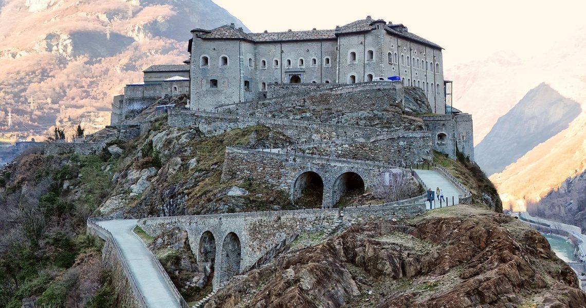 Il Forte di Bard,con la sua imponenza si staglia all’ingresso della Valle d’Aosta in quella che fu all’epoca romana “La via delle Gallie”.